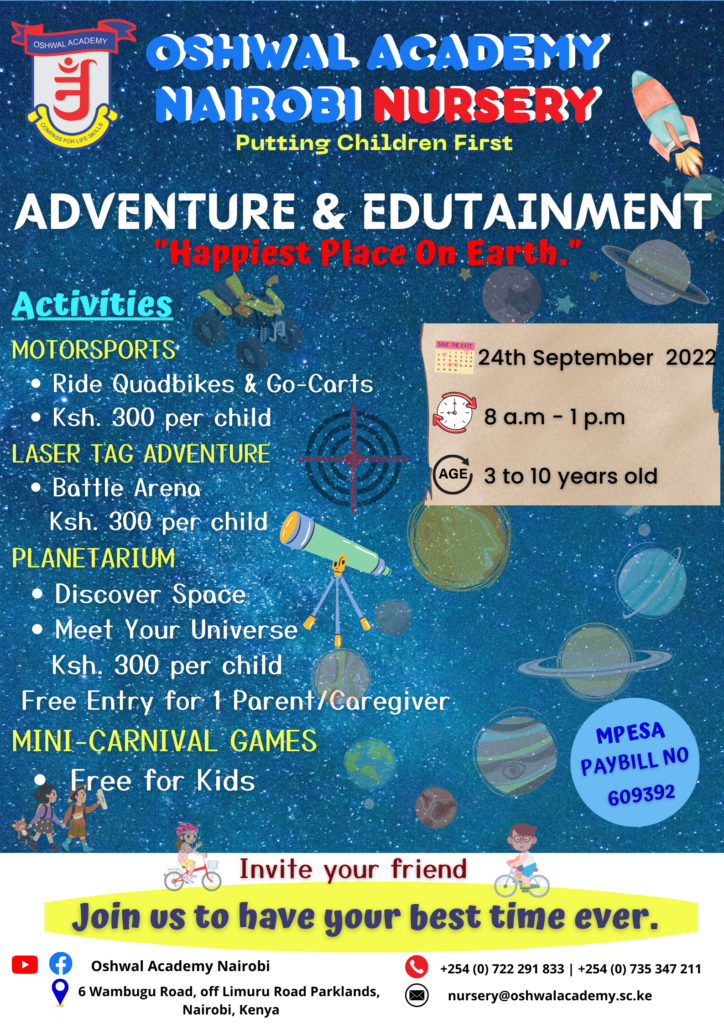 - Tickets per activity will be issued at the Oshwal Academy Nairobi Nursery on the event day.