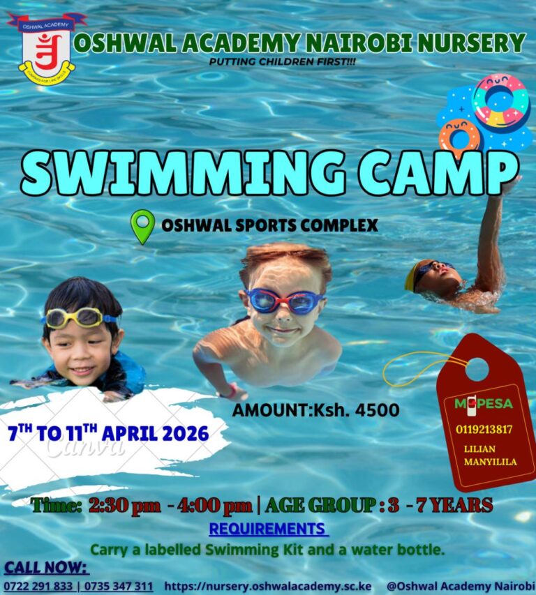 It’s great that this holiday season, there will be a SWIMMING CAMP at Oshwal Academy Nairobi Nursery in association with Oshwal Sports Complex for 1 week! Time: 2:30 pm to 4:00