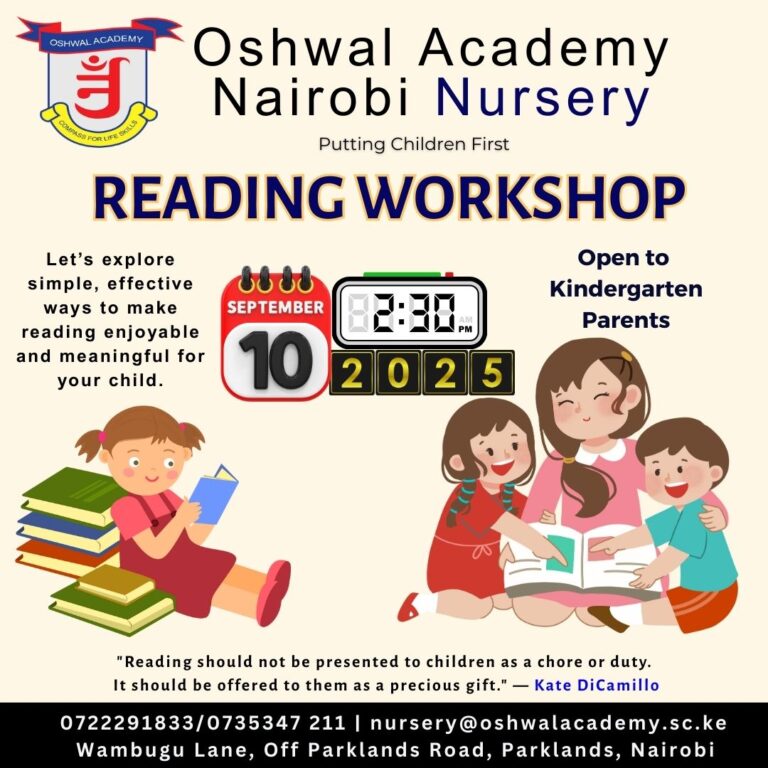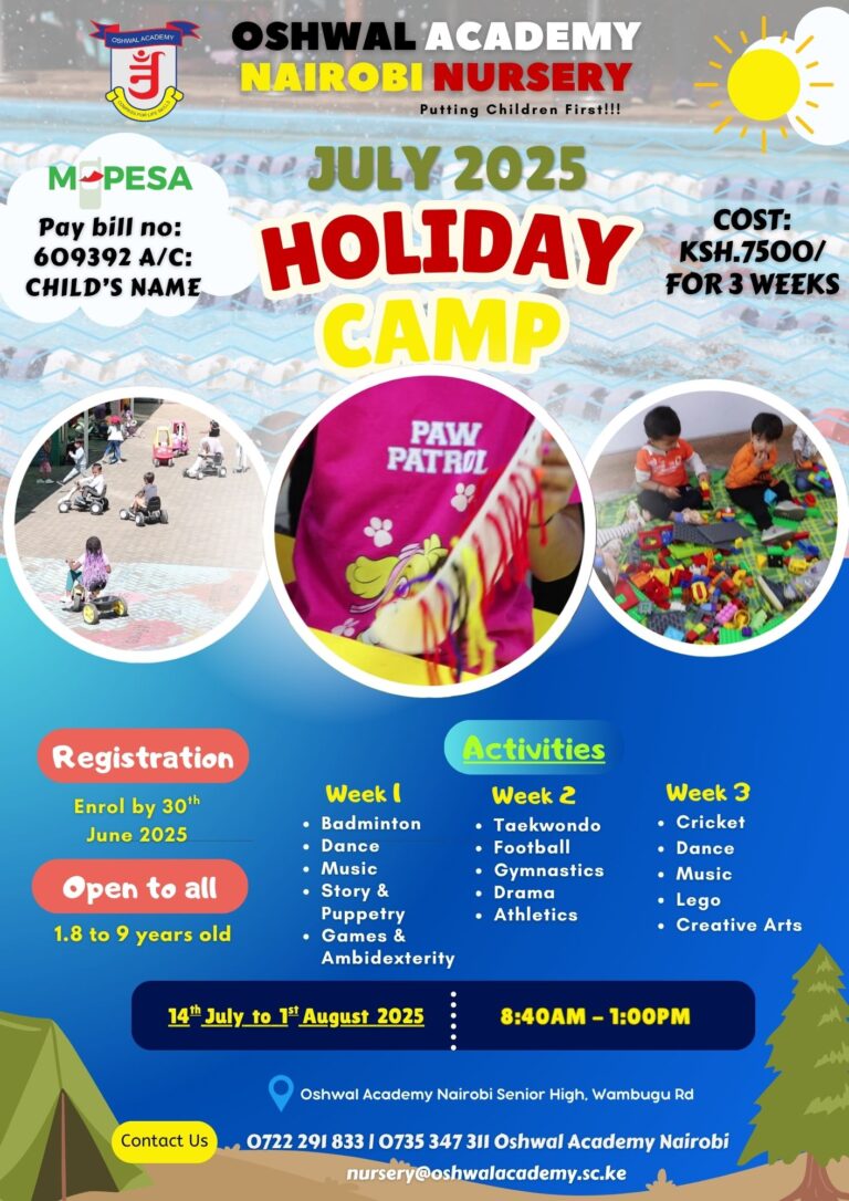 Venue: OSHWAL ACADEMY NAIROBI SENIOR HIGHSCHOOL YEAR GROUPS ARE AS FOLLOWS: Playgroup- first 15 enrolments only (2 years plus) Preschool – first 25 enrolments only (3